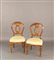 Cinque sedie in mogano, schienale traforato, seduta imbottita e rivestita in...