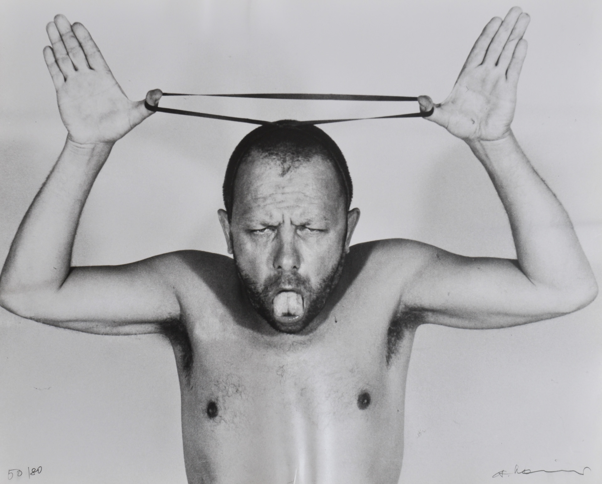 Arnulf Rainer (Baden 1929) Autoritratto;Fotografia in b/n su carta, 48,5 x 60 cm, lieve piegatura in basso al centro