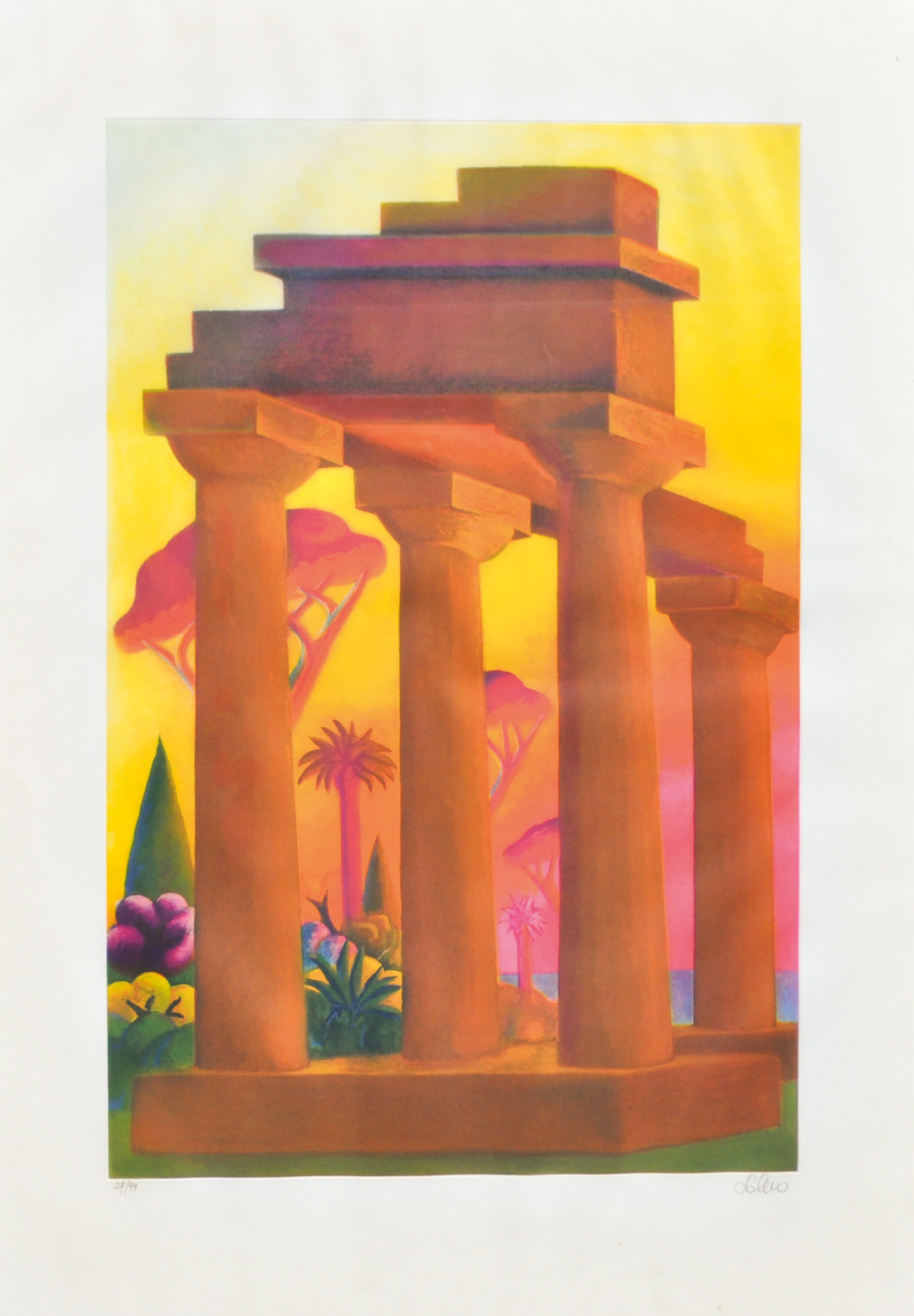 Salvo (Leonforte 1947 - Turin/Torino 2015) Tempio greco;Acquatinta, 90 x 59 cm (lastra), 120 x 84 cm (foglio)