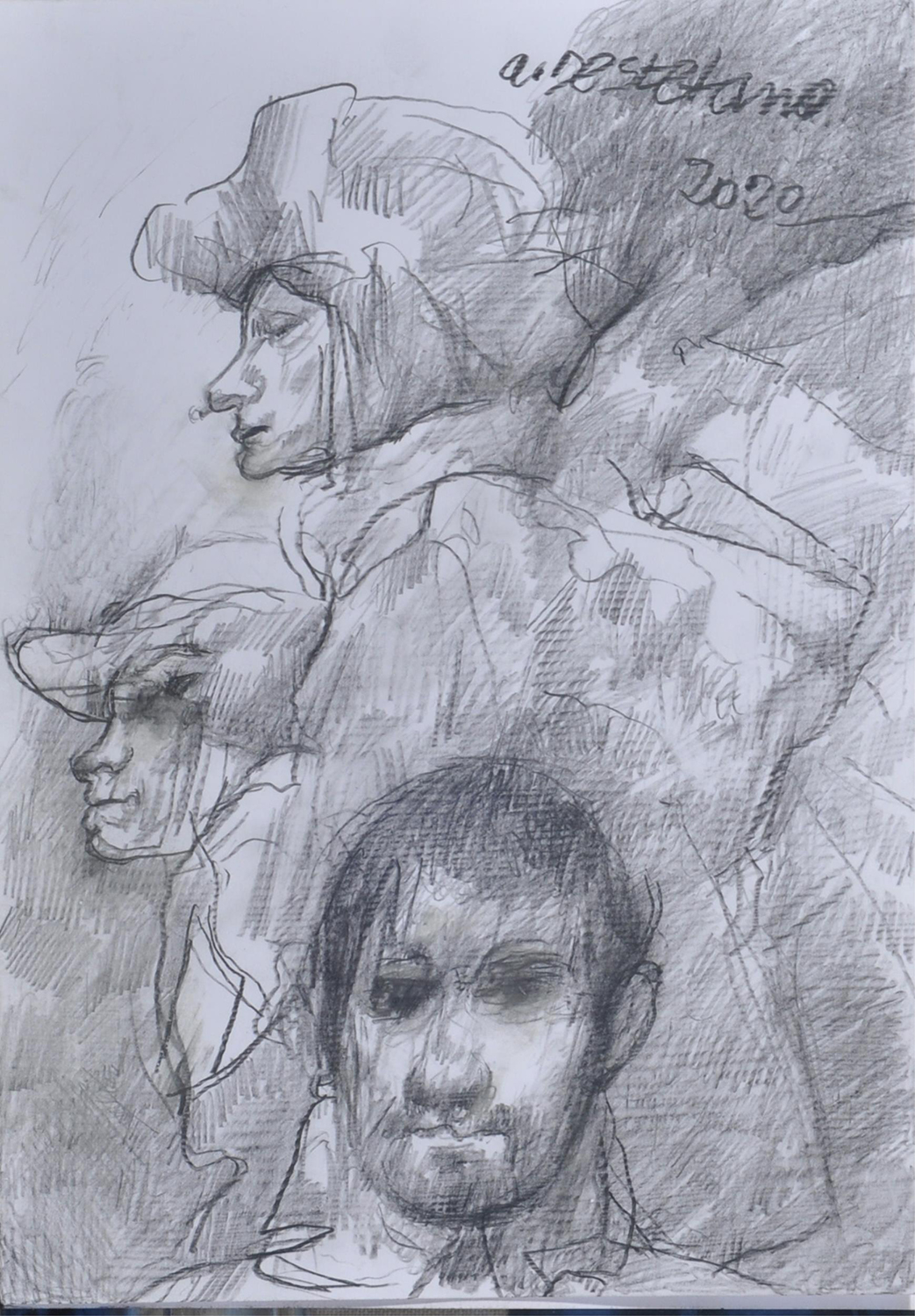 De Stefano Armando (Napoli 1926-2021) Personaggi matita su carta, cm 30x21 firmato e datato in alto a destra: A. De Stefano 2020