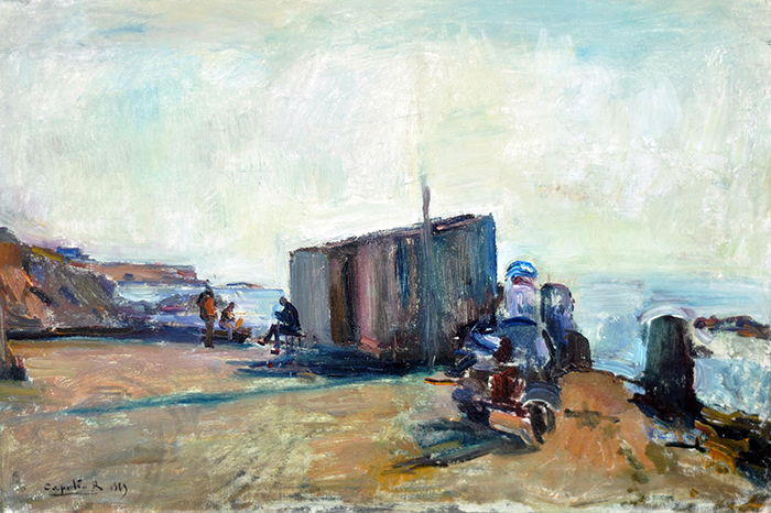 Capaldo Rubens (Parigi 1908 - Napoli 1987) Paesaggio marino olio su tela, cm 40x60 firmato e datato in basso a sinistra: Capaldo R. 1969