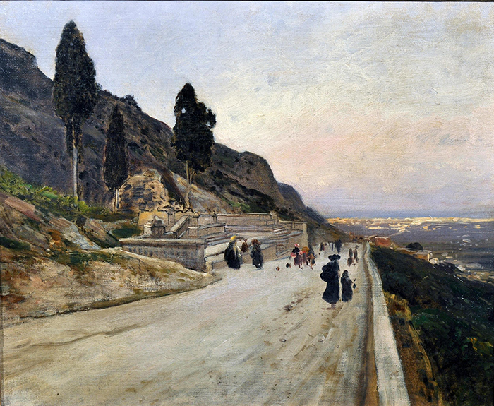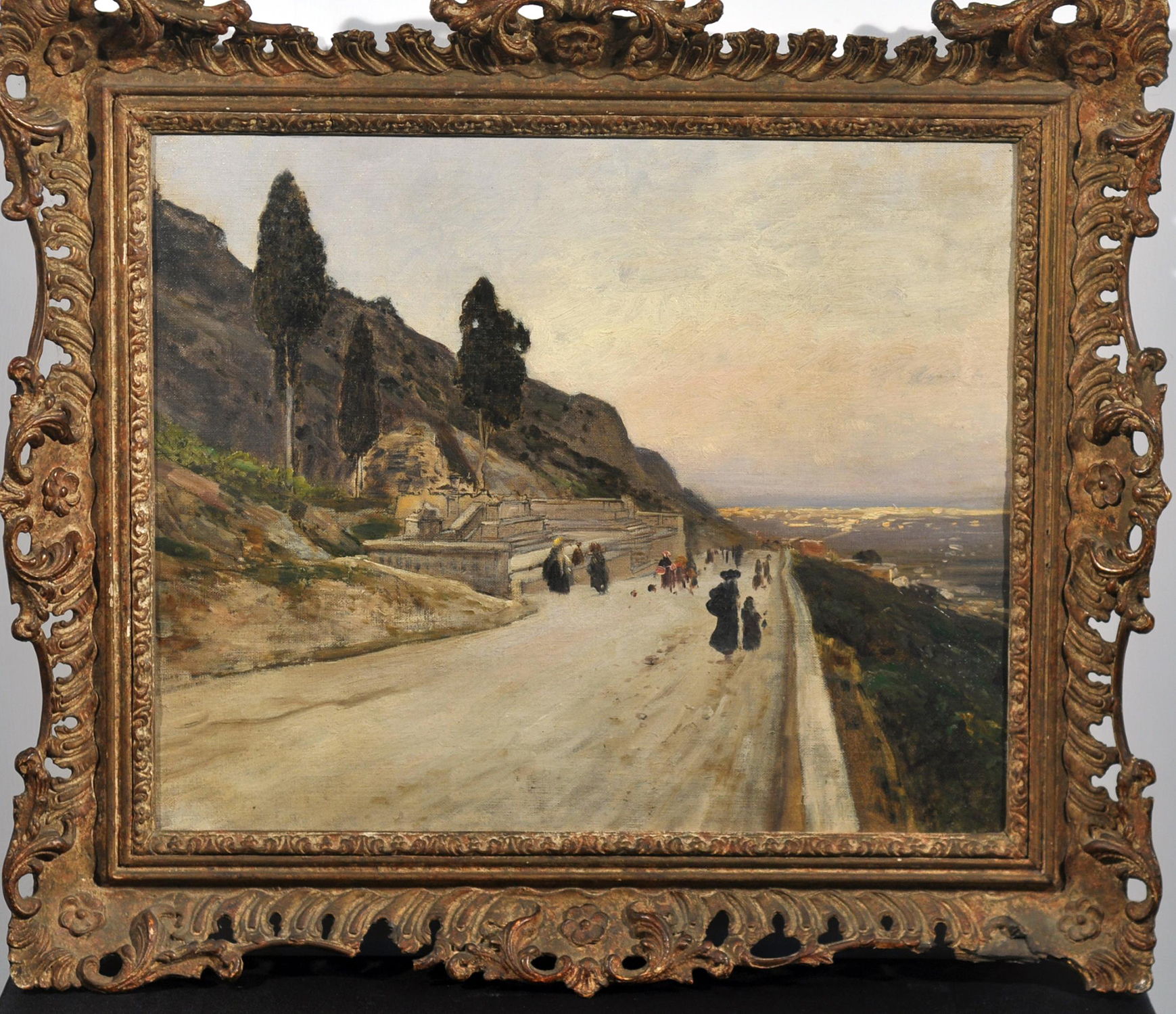 Achenbach Oswald (Düsseldorf 1827 - 1905) Veduta olio su tela rip. su cartone, cm 39x47