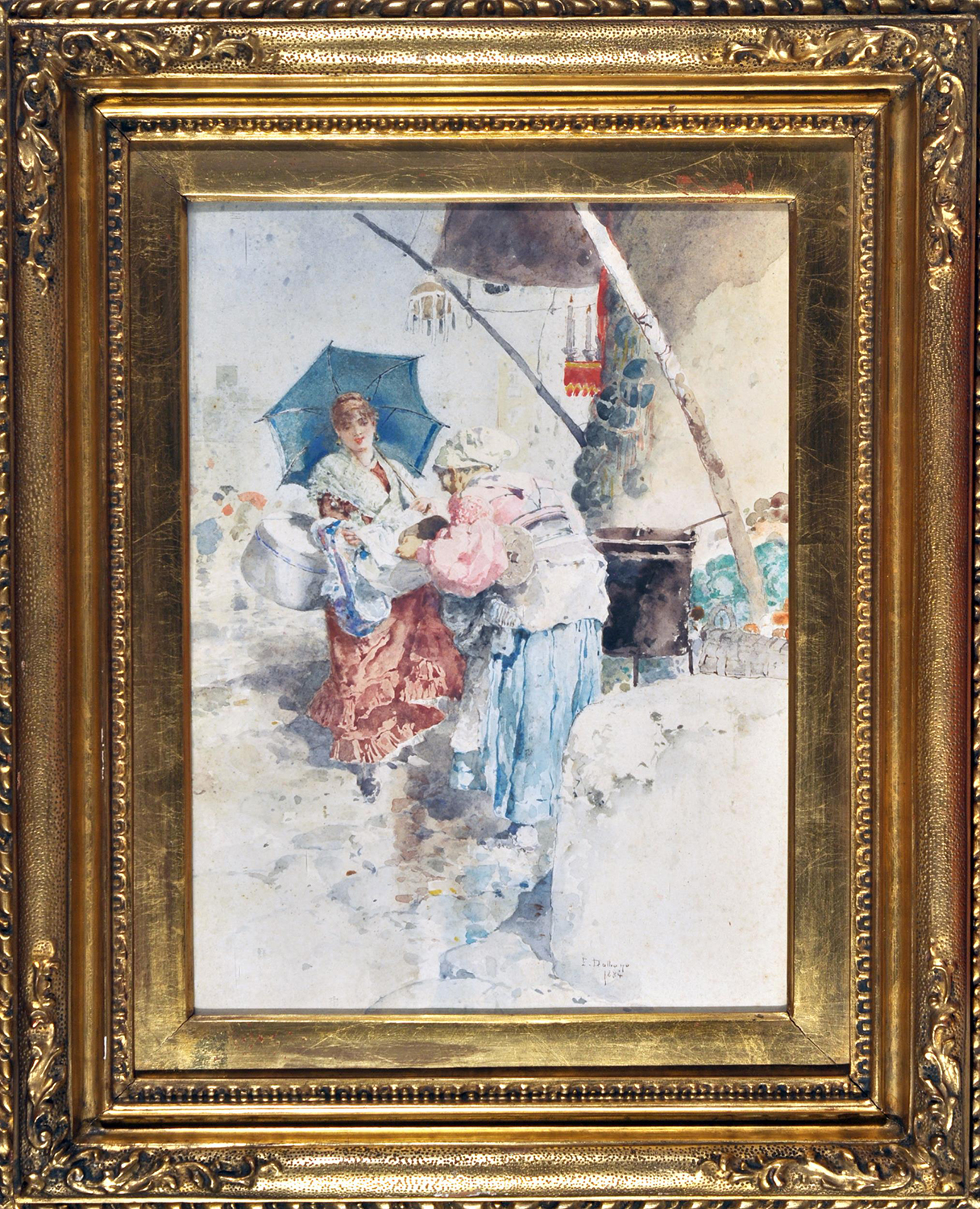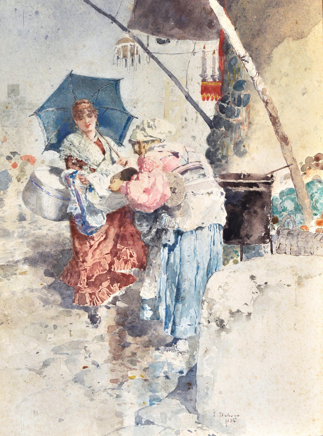 Dalbono Edoardo (Napoli 1841 - 1915) Scena di vita napoletana acquerello su carta, cm 38x28,5 firmato e datato in basso a destra: E. Dalbono 1884