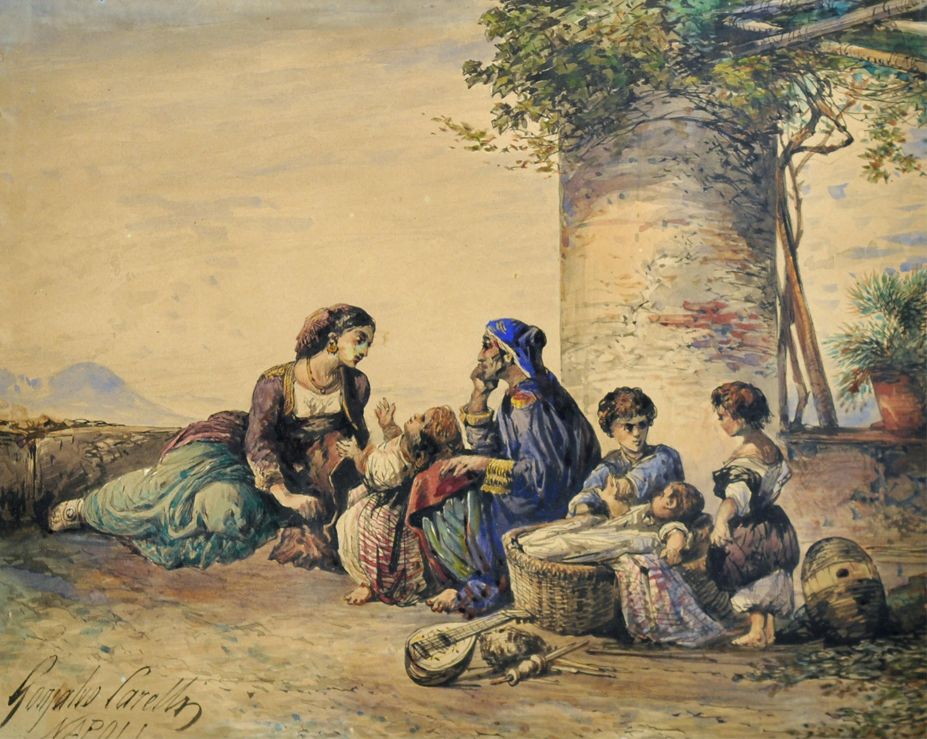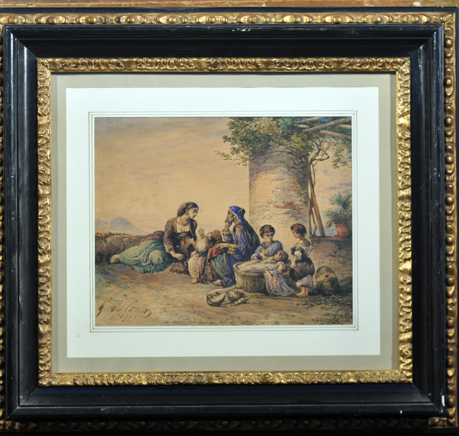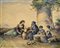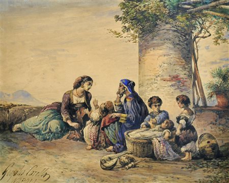Carelli Gonzalvo (Napoli, 1818 – 1910) Scena familiare acquerello su carta, cm 24x19 firmato e iscritto in basso a sinistra: Gonzalvo Carelli Napoli