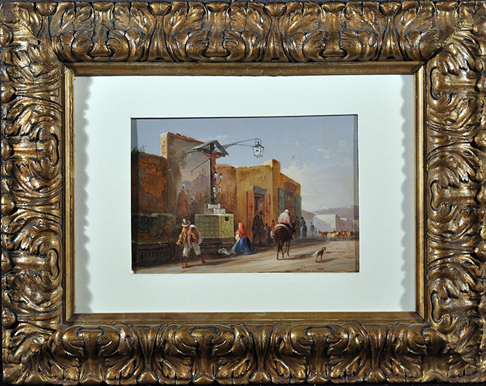 Scuola di Posillipo (inizio XIX secolo) Strada di paese olio su carta rip. su tavola, cm 12,5x18