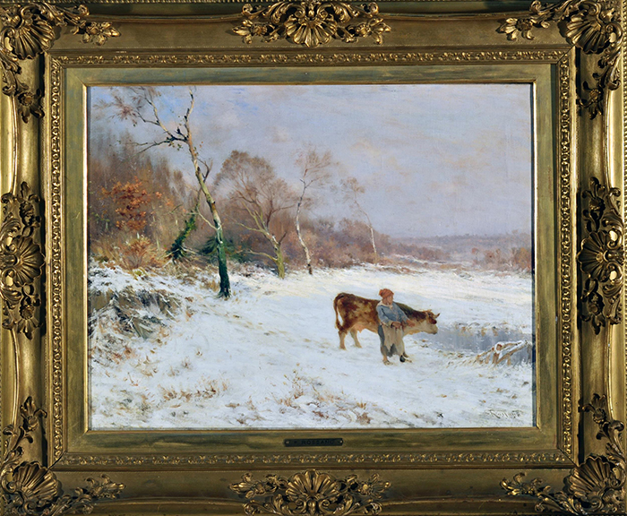 Rossano Federico (Napoli 1835 - 1912) Mucca al pascolo olio su tela cm 45x60 firmato in basso a destra: Rossano a tergo cartiglio Mostra del paesaggio napoletano dell'Ottocento A. XIV Provenienza: Gall. Giosi, Napoli; Finarte, Milano; Gall. Giosi, Napoli; coll. privata, Modena Esposizioni: Napoli settembre 1936; Napoli 1983; Milano 1988; Napoli 1989 Bibliografia: Il paesaggio nella pittura napoletana dell’Ottocento, Sindacato Interprovinciale Fascista di Belle Arti, Napoli 1936, pag. 86; R.Caputo, Federico Rossano, Grimaldi C. Ed. Napoli 2000 tav XXXIII; Vendita all'asta Gall. Giosi Napoli 1983, n. cat 49; Cat. asta Finarte Milano 1988; Ottocento. Catalogo dell’Arte italiana dell’Ottocento n.17, Mondadori, Milano 1988, ill. b/n p.367; Vendita all'asta Gall. Giosi, Napoli 1989 n. cat 56 a colori