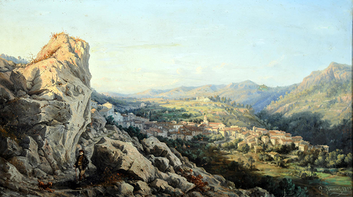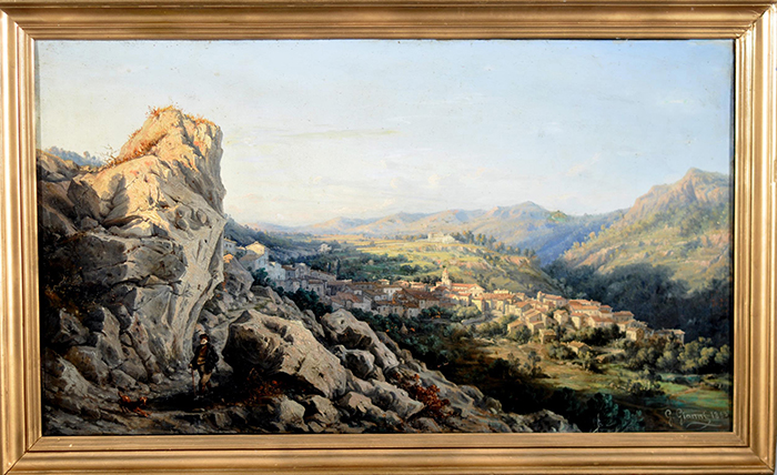 Gianni Girolamo (Napoli 1837-1895) Veduta olio su tela, cm 55x93 firmato e datato in basso a destra: G. Gianni 1863