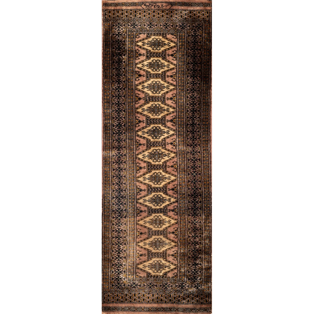 Tappeto Kashmir Bokara, trama ed ordito in cotone, vello in lana.