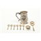 Officine londinesi del 1769 Boccale in argento sbalzato a motivo floreale e fogliaceo, un cucchiaio, dodici cucchiaini ed un cucchiaio per olio (g. 439).