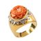 ANELLO in oro giallo e bianco con corallo centrale lavorato raffigurante "Sole" e diamanti taglio brillante ct. 0,06 J color VS2 (g. 12,60).