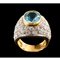 ANELLO in oro giallo 18 KT con zirconi e pietra centrale sintetica (g. 12,75).