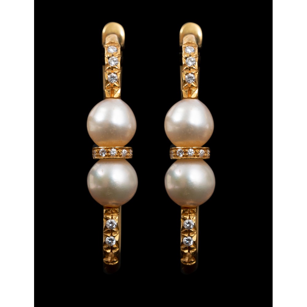 ORECCHINI in oro giallo 18 KT con brillanti e perle