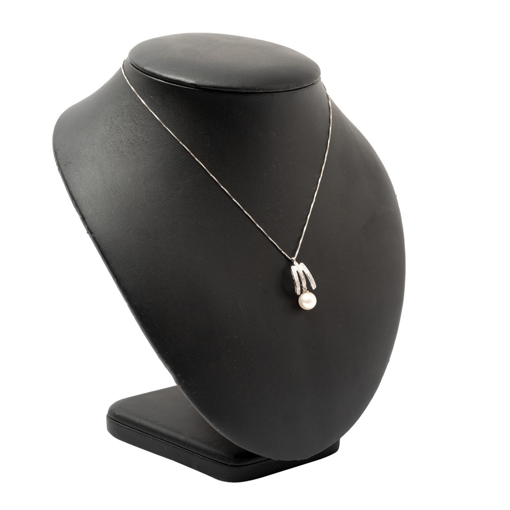 COLLANA in oro bianco 18 KT con diamanti taglio brillante ct. 0,25 I color VS1 e perla coltivata Giappone (g. 5,20)