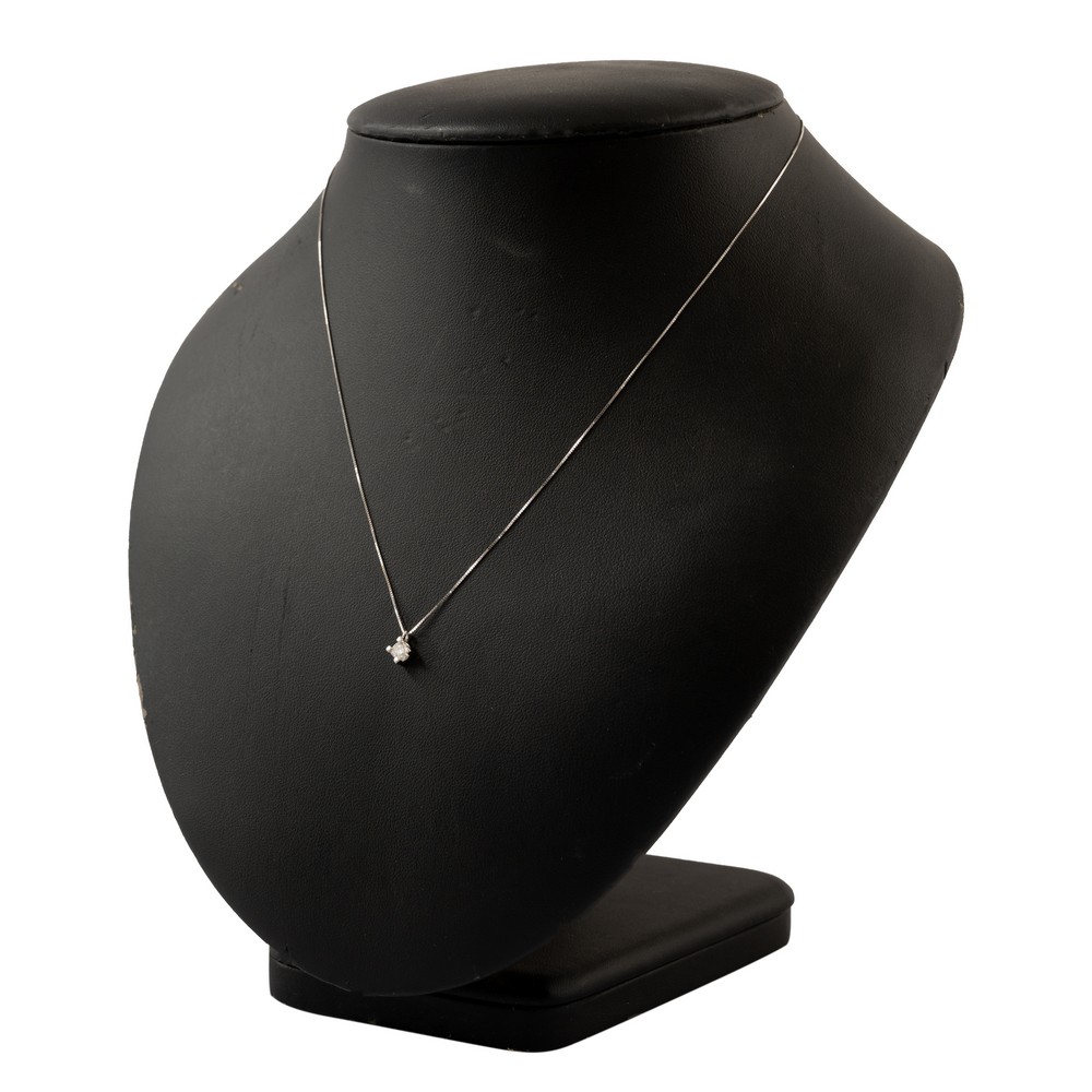 COLLANA punto luce in oro bianco 18 KT con diamante taglio brillante ct. 0,14 I color VS1 (g. 1,40).