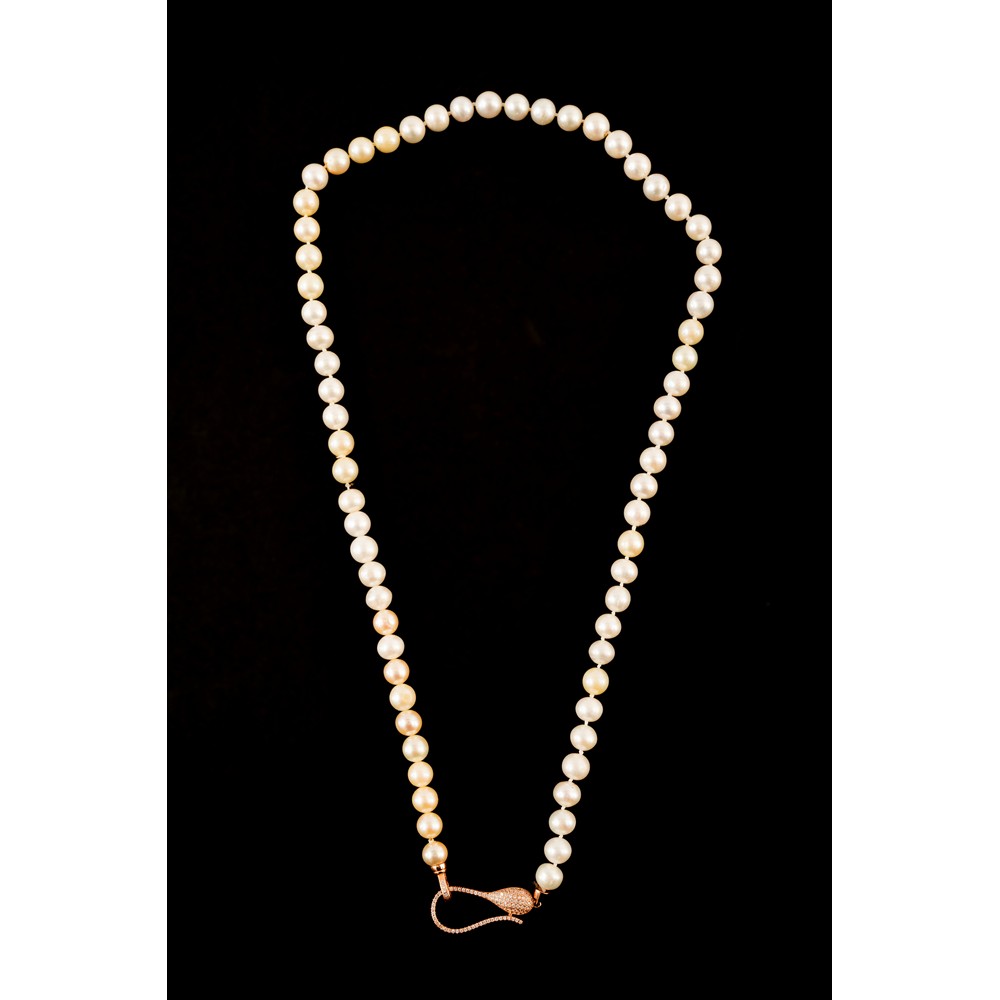 COLLANA di perle coltivate Giappone, susta in argento rosa 925 con strass.