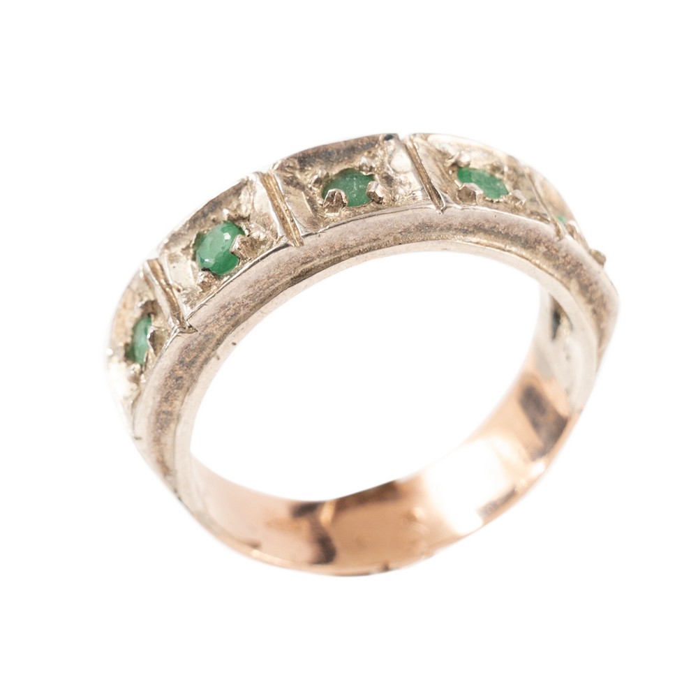 ANELLO in oro 9 KT e argento con smeraldi (g. 4,20) (usure).