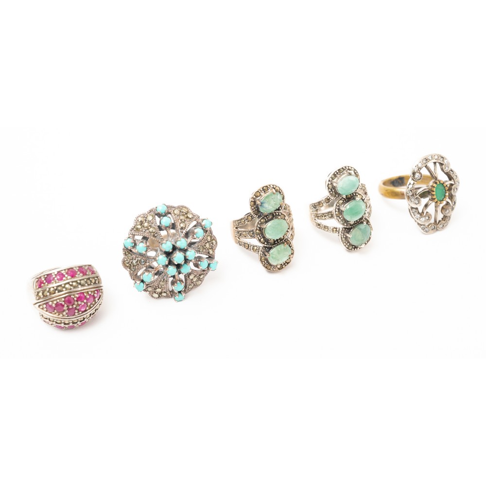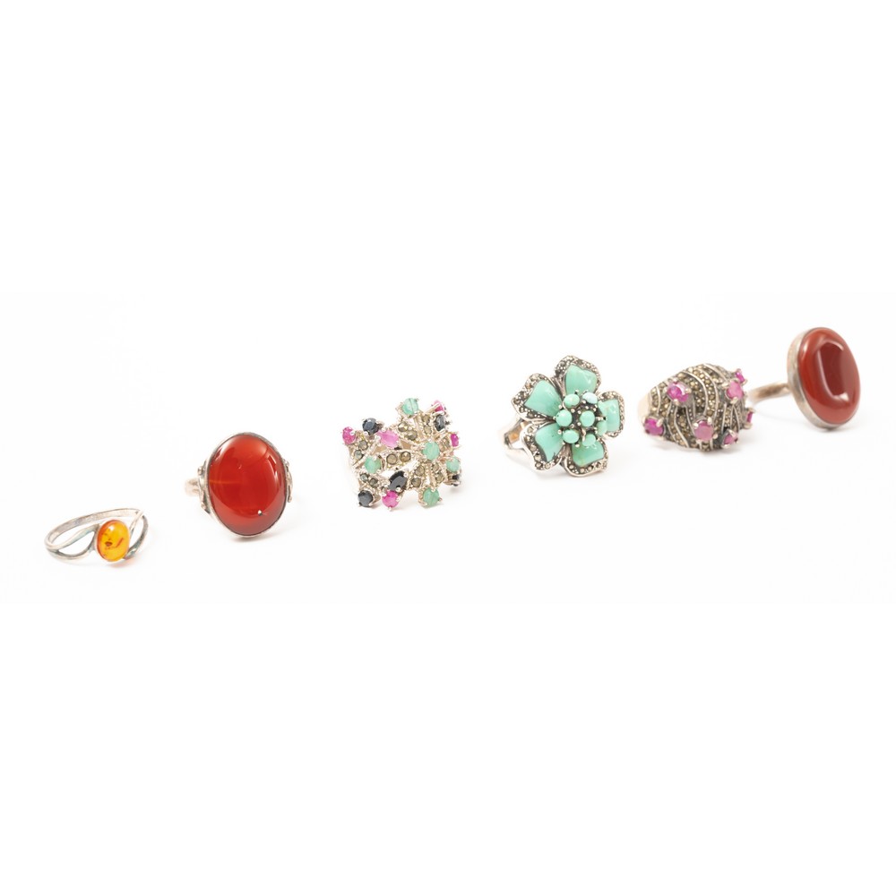 UNDICI ANELLI in argento e metallo con pietre semipreziose.