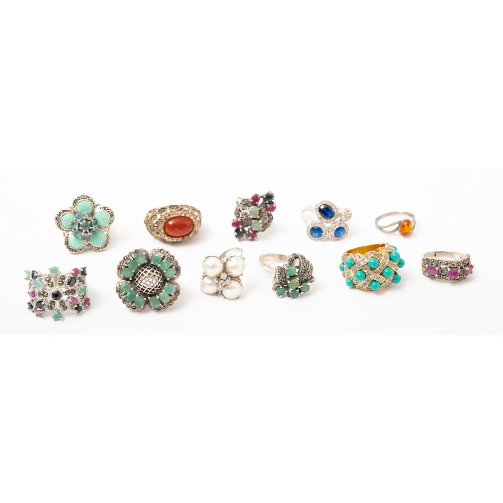 Lotto 235 | UNDICI ANELLI in argento e metallo con pietre semipreziose