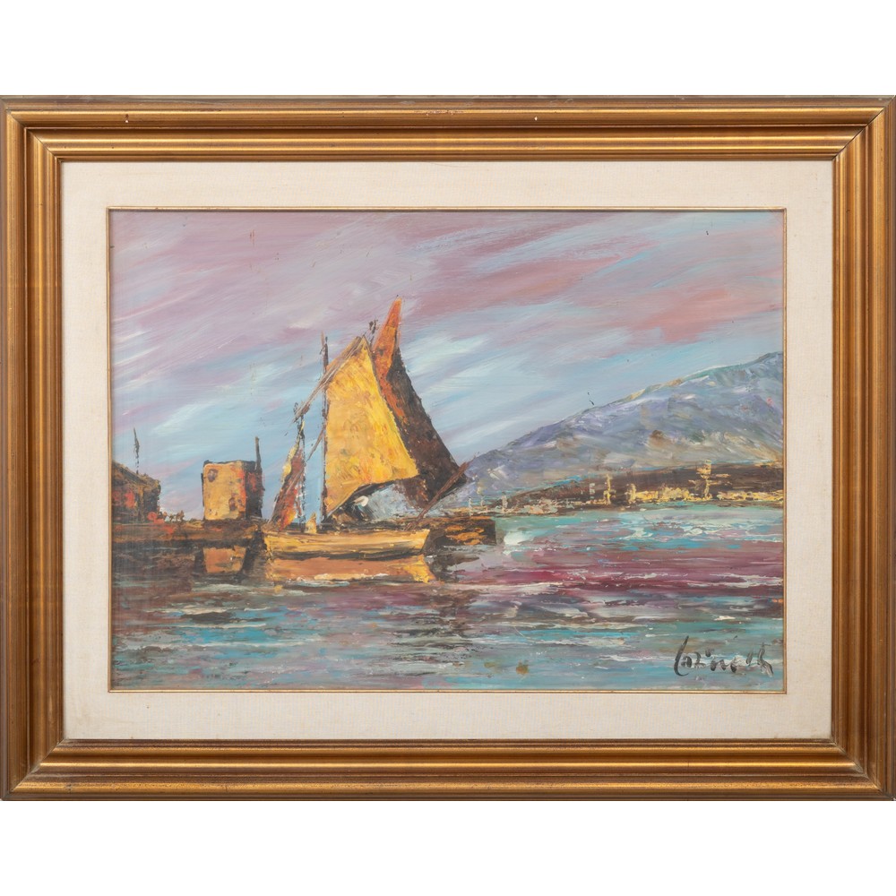 PITTORE DEL XX SECOLO. Paesaggio marino con pescatori