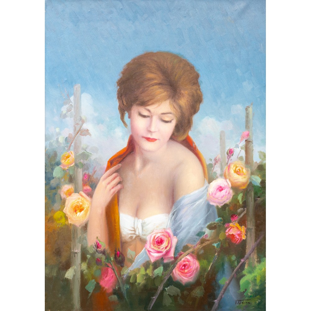 Mezzobusto di ragazza con rose