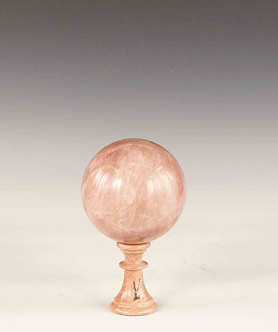 Sfera in quarzo rosa poggiante su base in marmo, h. cm.19 .