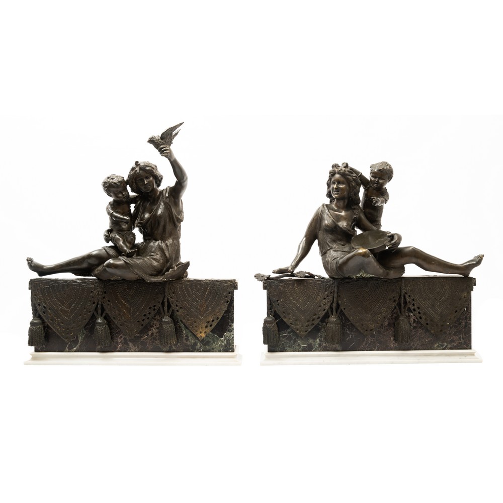 SCULTORE ITALIANO DEI PRIMI '900, Coppia di sculture bronzo