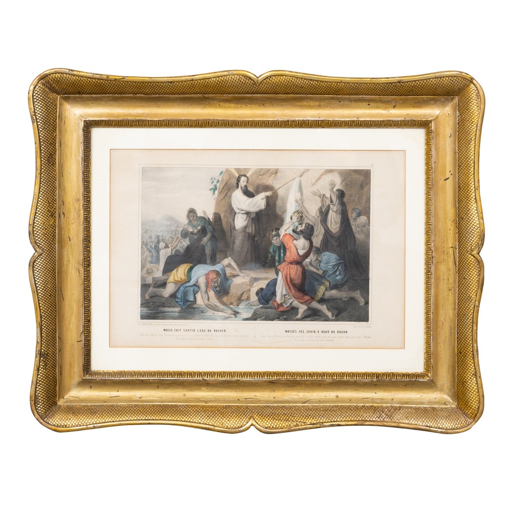 Cornice a guantiera in legno dorato ad argento a mecca con incisione raffigurante "Mosè".