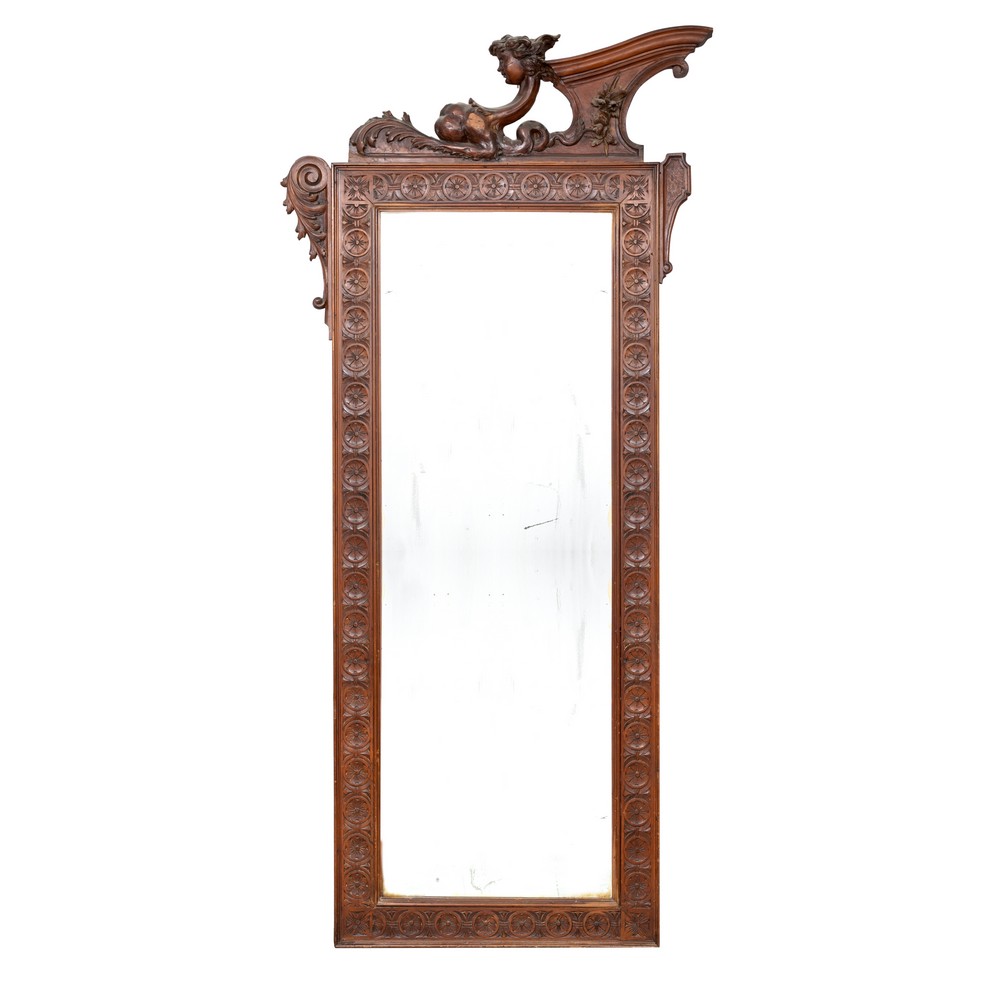 SPECCHIERA Umbertina in legno di noce riccamente intagliata.