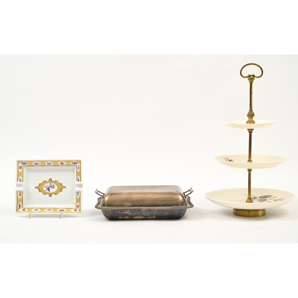 Legumiera in metallo, Alzata a 3 livelli in ceramica con struttura in metallo e svuotatasche in ceramica.