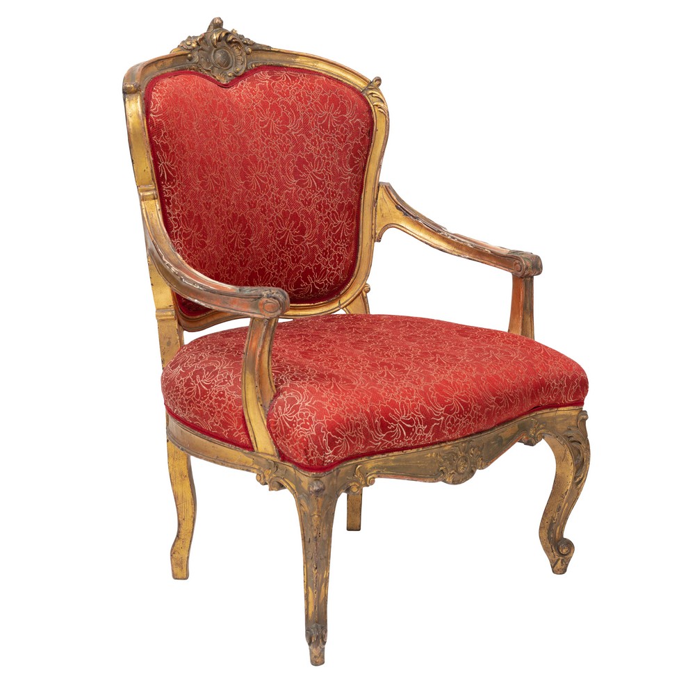 POLTRONA stile Luigi XV in legno dorato.