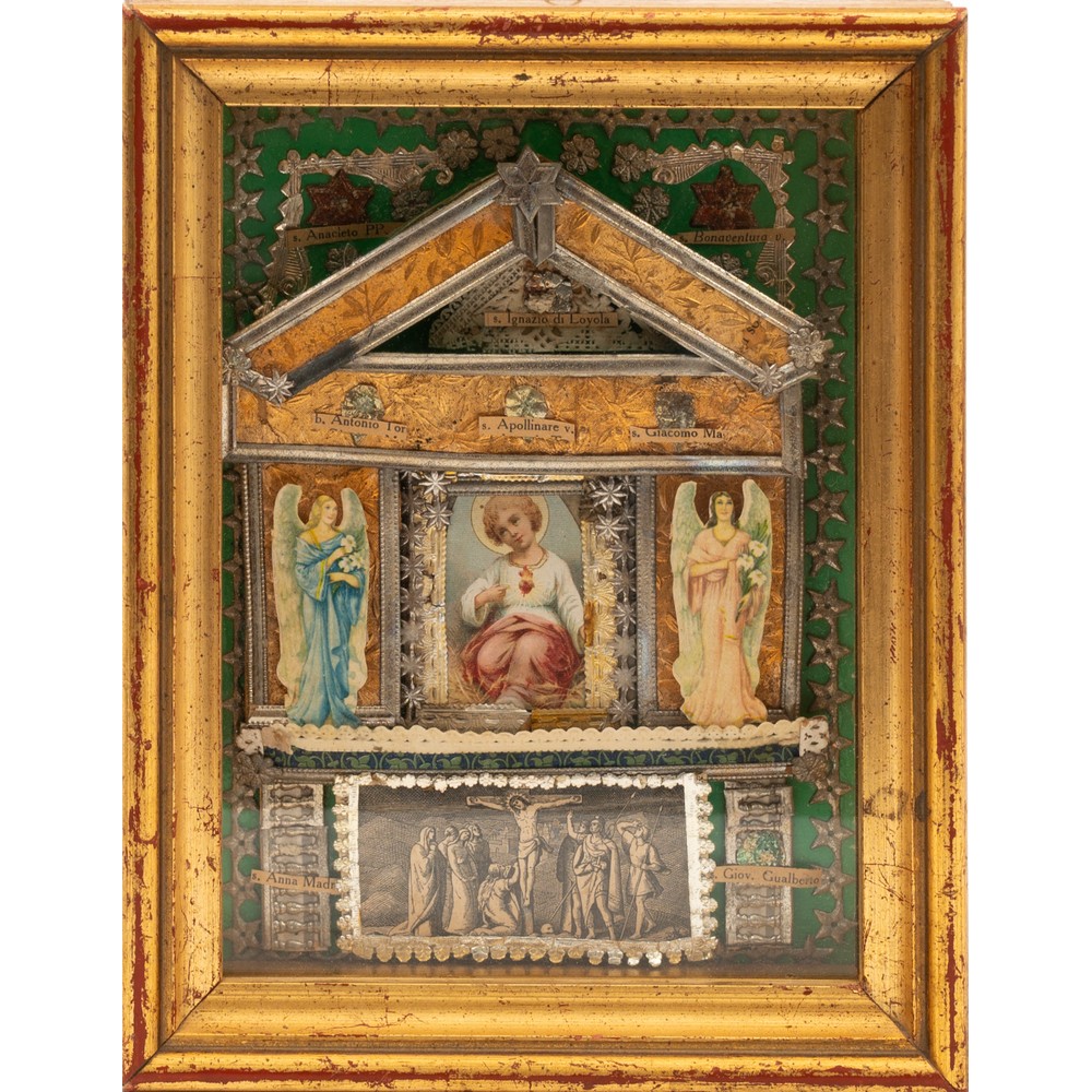 con altare, in lamina di ottone e miniatura dipinta, entro teca in legno dorato.
