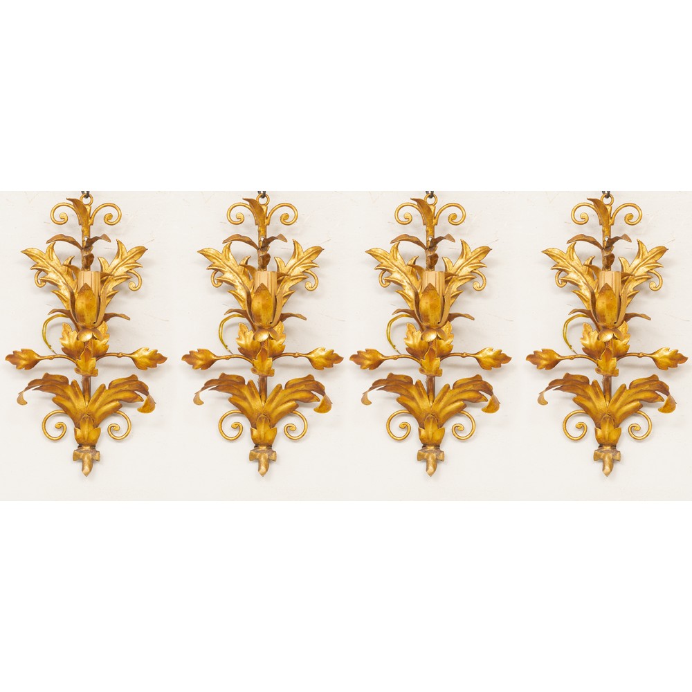 QUATTRO APPLIQUE ad una luce in metallo dorato.