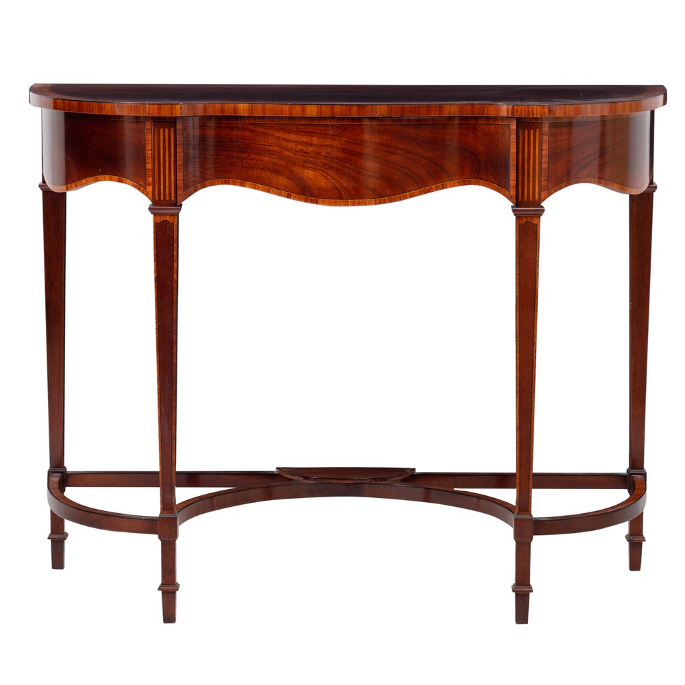 PICCOLA CONSOLLE di forma sagomata in mogano con marchetterie in bois de rose.
