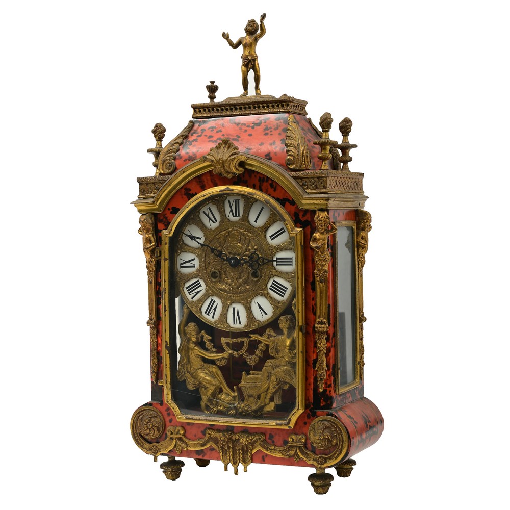 ORLOGIO stile Luigi XIV in finta tartaruga ed elementi in ottone.