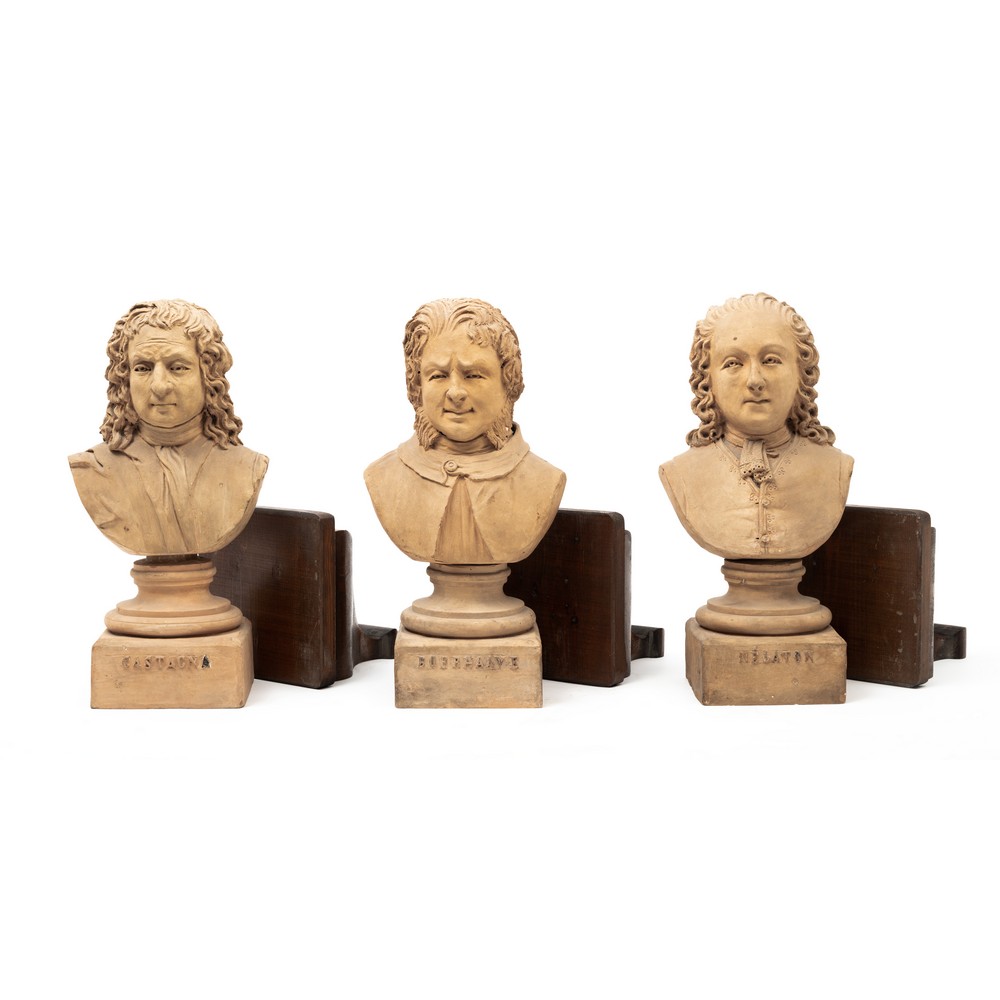 TRE MEZZIBUSTI in terracotta con mensola in legno