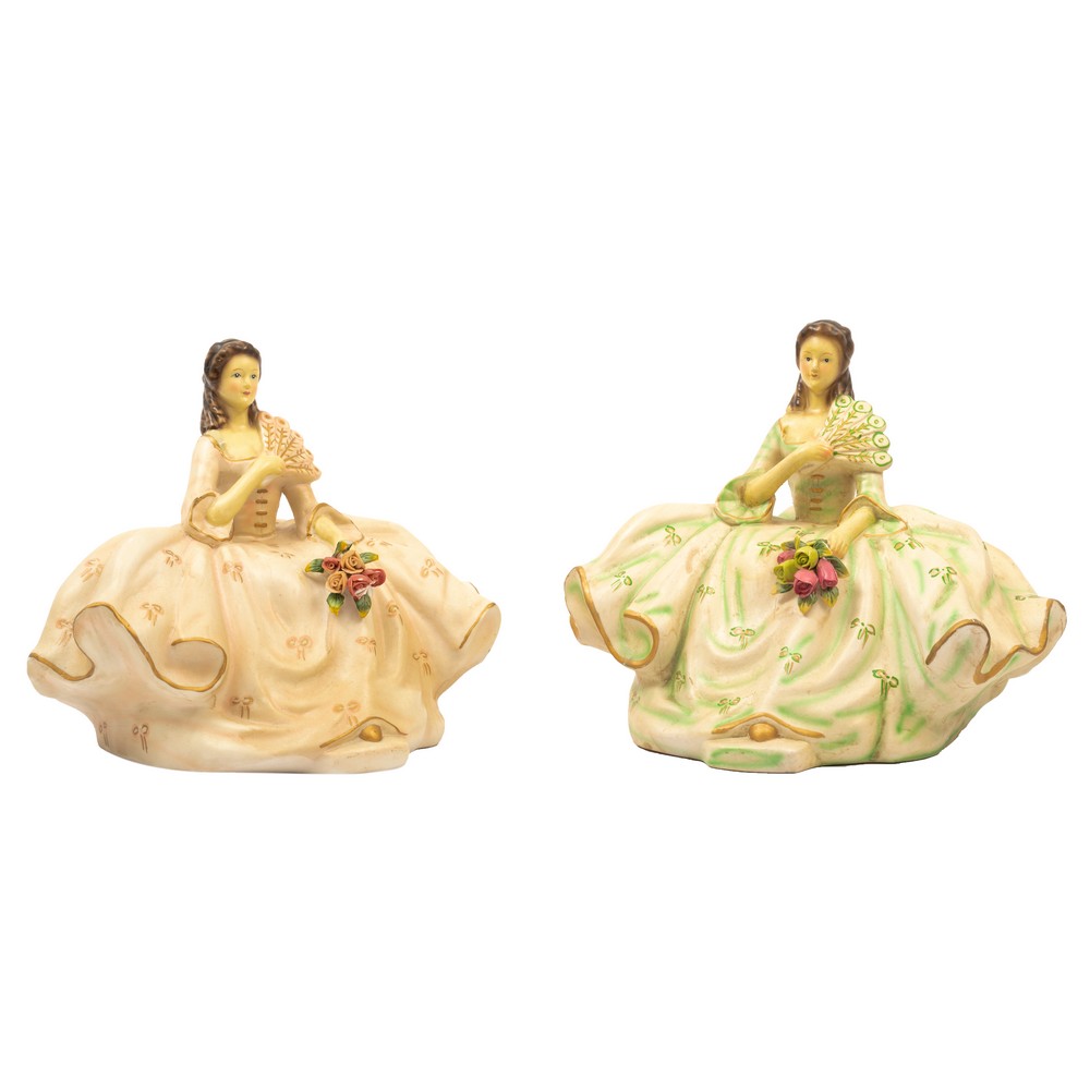 COPPIA DI STATUETTE in biscuit policromo raffigurante figure femminili.