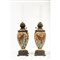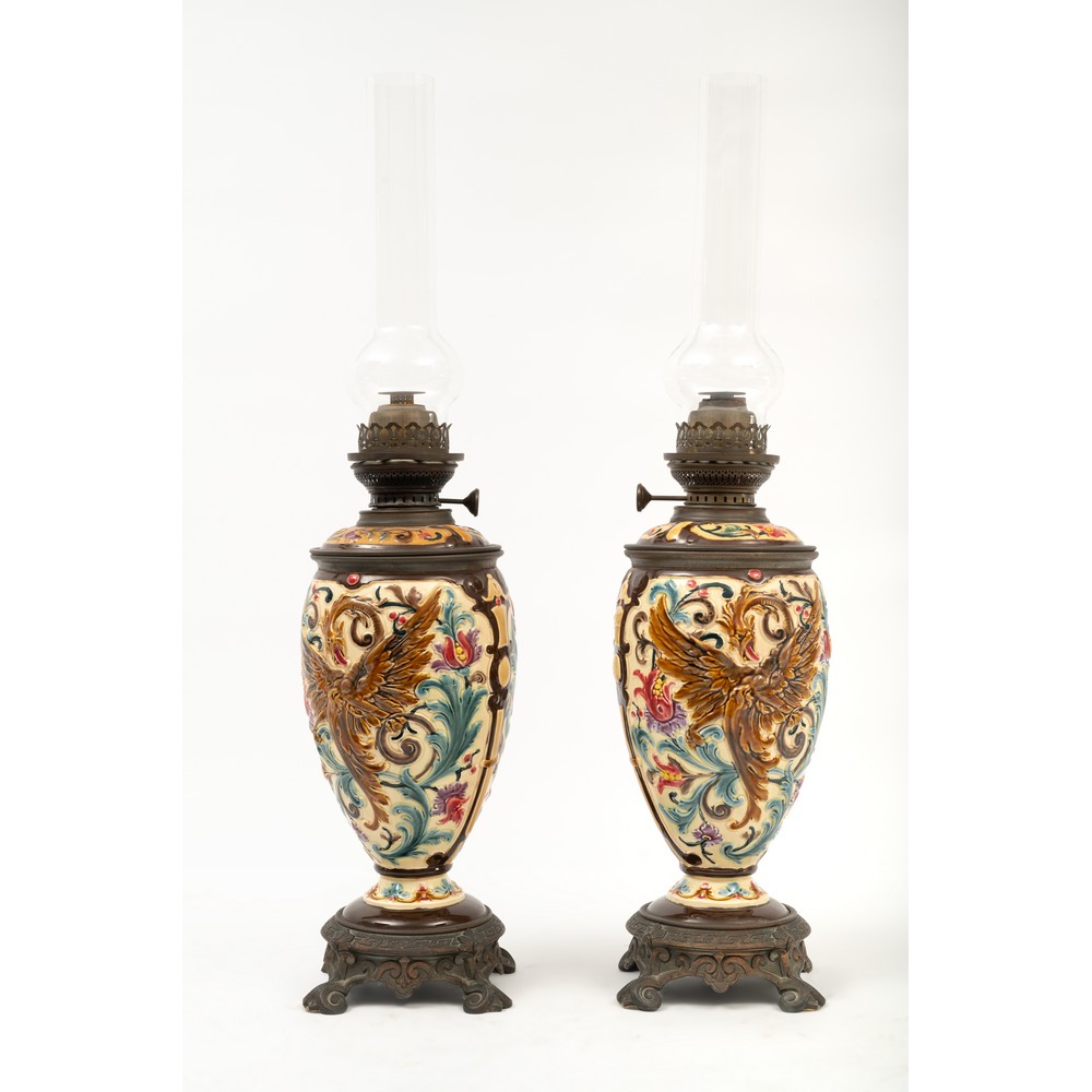 COPPIA LUMI a petrolio in ceramica smaltata con base in metallo.