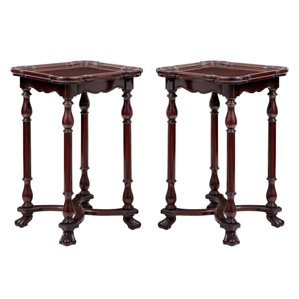 COPPIA TAVOLINI di gusto vittoriano in mogano.
