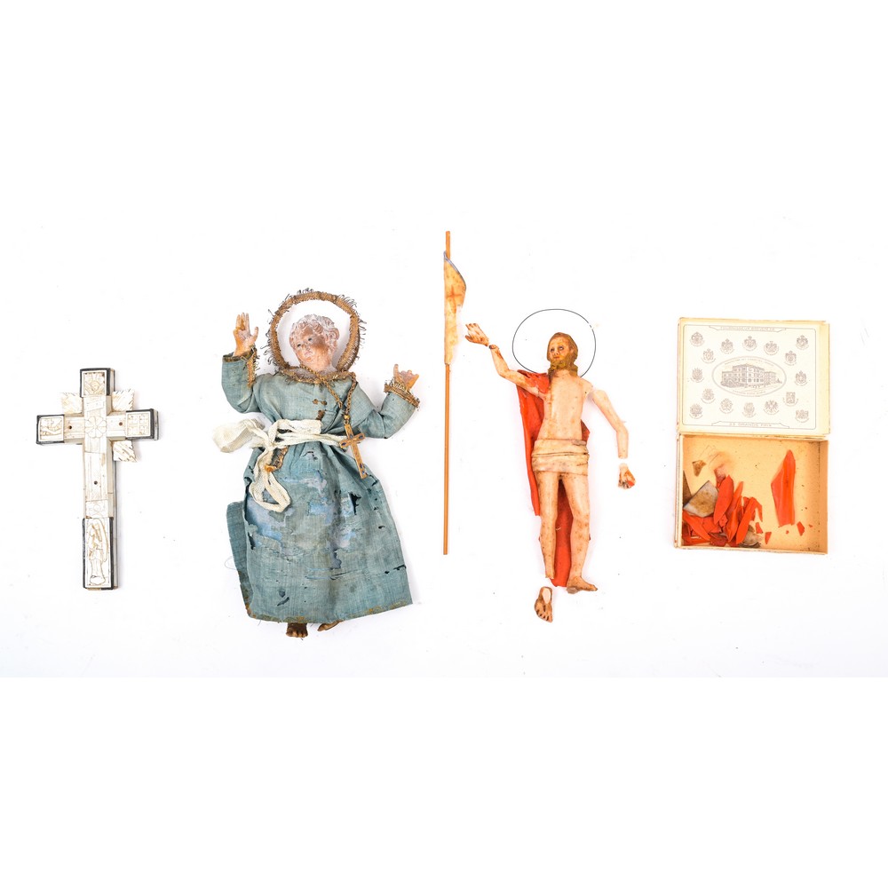 Croce in madreperla, Angelo in cera e Cristo in cera (mancanze).