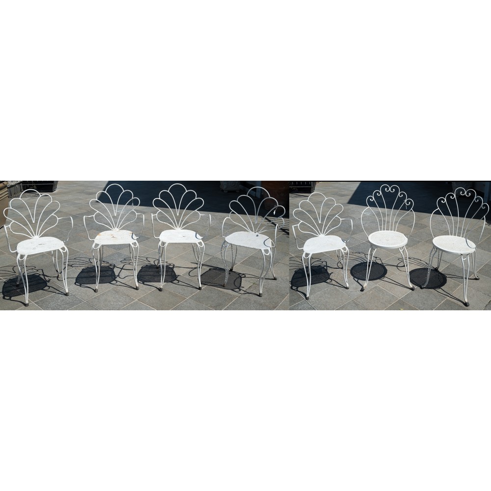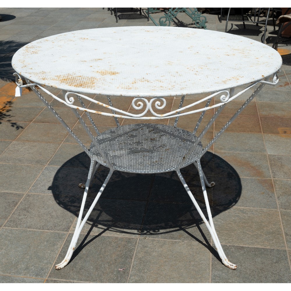 TAVOLO tondo in ferro con sette poltrone.