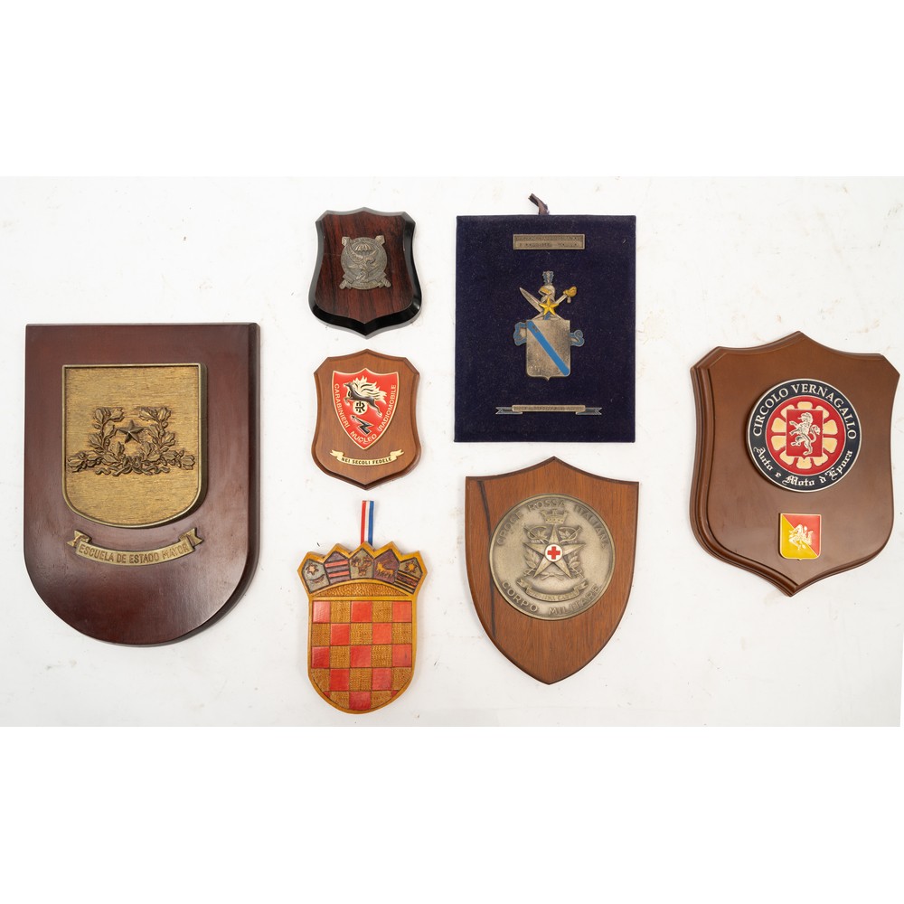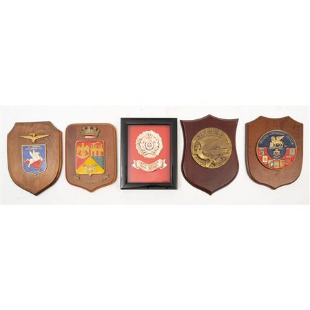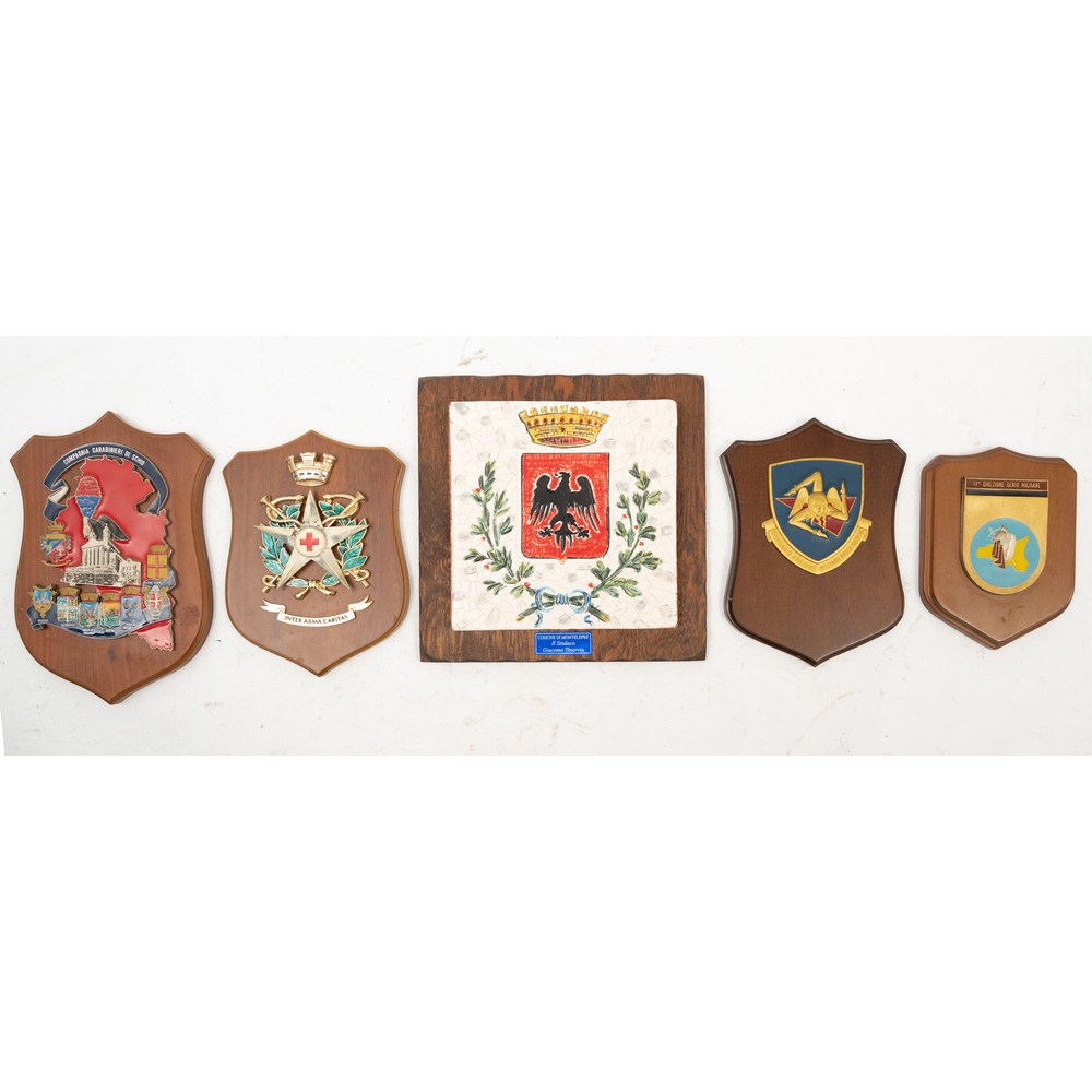 SEDICI SCUDI raffiguranti simboli di corpo d'azione militare e civile della II metà del XX secolo.