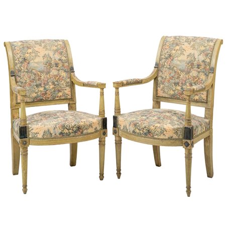 Coppia poltrone stile Luigi XVI in legno laccato.