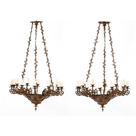 Coppia di lampadari in ottone, stile impero a 12 luci.