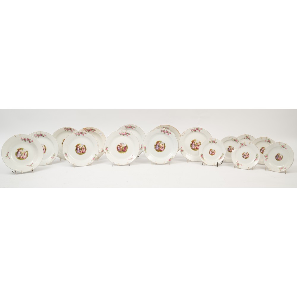 Sedici piatti Florio con figure neoclassiche (usure e difetti).