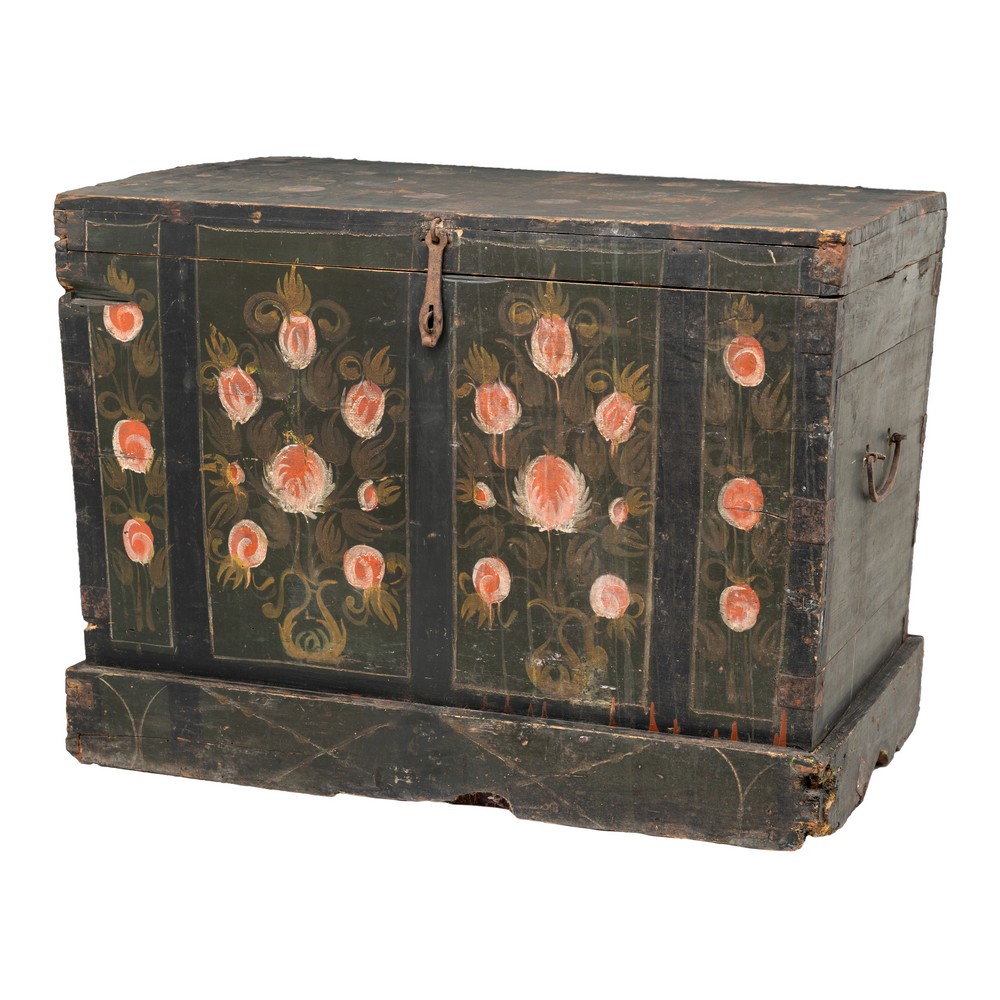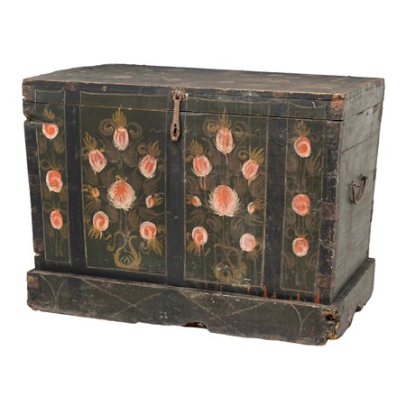CASSAPANCA TIROLESE in legno laccato e dipinto a motivo floreale.