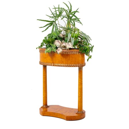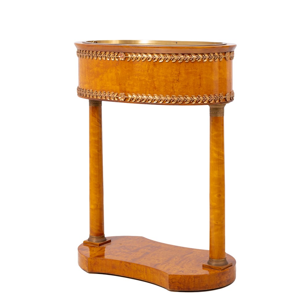 FIORIERA di forma ovale olmo e radica di olmo con bordure dorate.