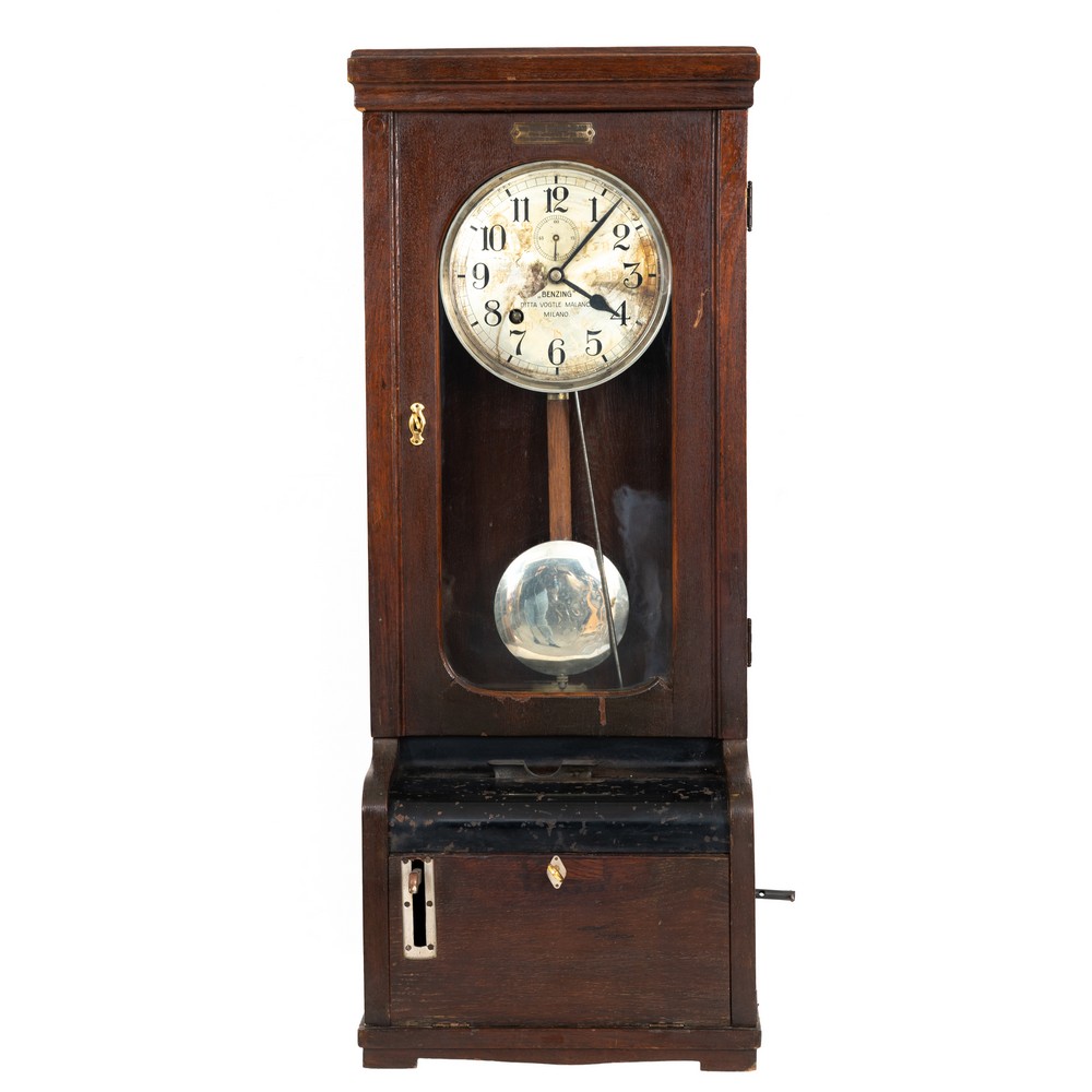 OROLOGIO da parete a pendolo in legno di rovere con timbratura Benzing Ditta Vogtle Malanca Milano.