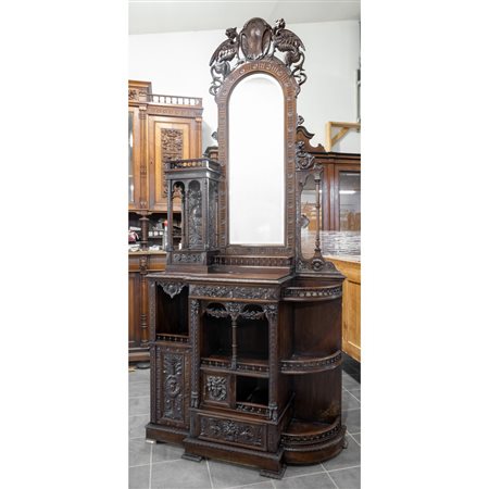 Etagere Umbertino in legno di noce riccamente intagliato.
