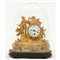 Orologio in metallo dorato con scultura raffigurante "Cacciatore", entro campana in vetro e base in legno ebanizzato.