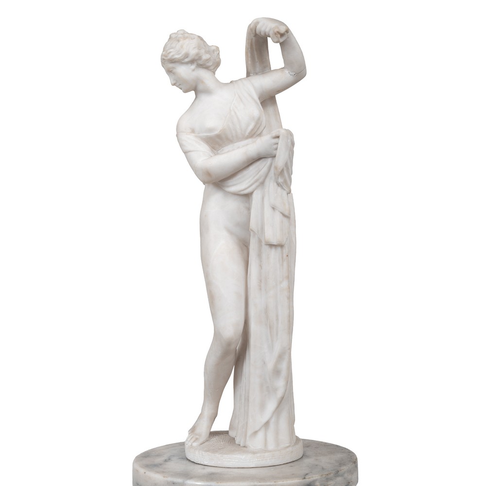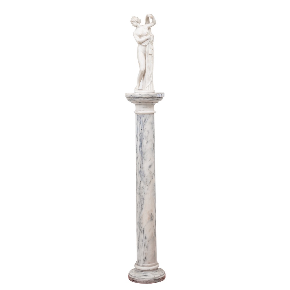 SCULTURA in alabastro "Figura neoclassica" con colonna